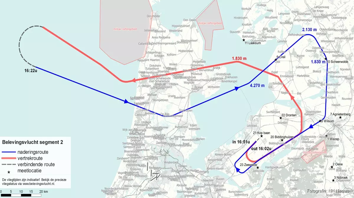 De Boeing vliegt drie keer over de kop van de provincie en over West-Friesland. Bewoners kunnen via belevingsvlucht.nl direct laten weten hoe ze het geluid hebben ervaren. Het ministerie meet de geluidshinder zelf ook op elf punten, maar heeft al laten weten dat de testvlucht geen rol zal spelen in verdere besluitvorming.